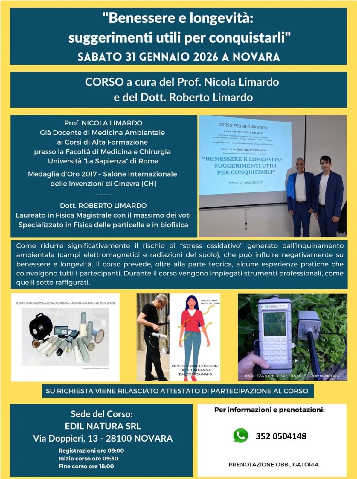 Un Corso Teorico-Pratico di grande valore per la salute ed il benessere di ognuno di noi. La fisica quantistica al servizio di un approccio olistico a Salute, Benessere e Longevità.