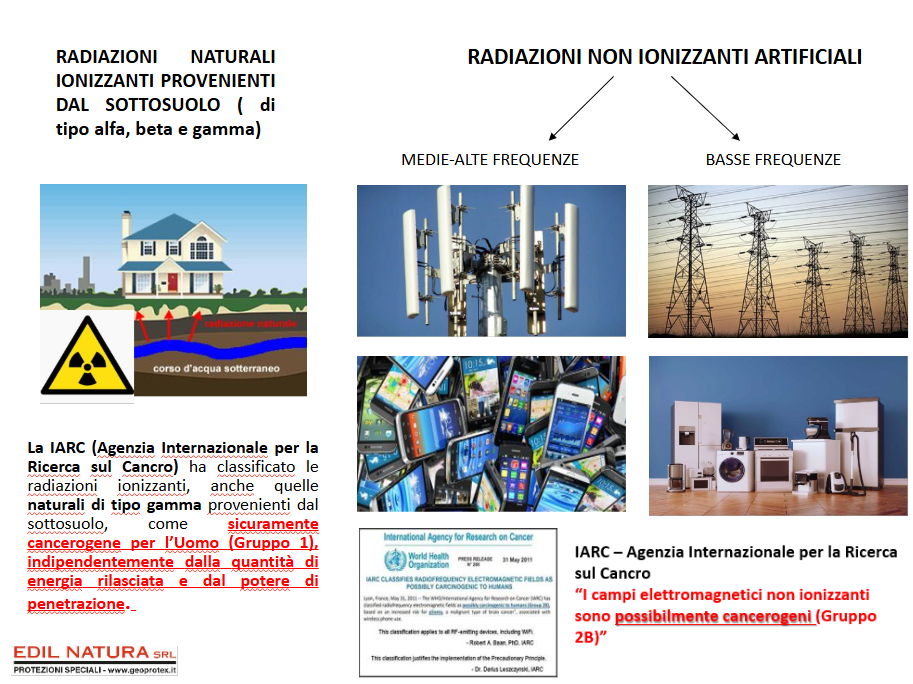 La scienza definisce i campi elettromagnetici artificiali possibilmente cancerogeni e le radiazioni ionizzanti naturali del sottosuolo certamente cancerogene.